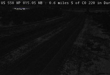 US 550 Colorado Road Conditions (webcams via CDOT) Click on a highway icon below to see live road conditions West Mountains Denver to Utah East Eastern Plains Denver to Kansas North Denver to WyomingFt Collins South Denver to New Mexico Colorardo Springs East Denver to Nebraska Sterling Denver Metro Aurora < Denver City StreetsI-270 National Parks < Loveland Pass Colorado Springs Woodland Park Buena Vista LovelandGreeley Boulder Broomfield Westminster Berthoud Pass Steamboat Springs Winter Park Pueblo Montrose Gunnison Greeley Fort Lupton Brighton Alamosa Durango Walsenburg Conifer Fairplay Buena Vista Longmont Lafayette Longmont Ft. Collins Holyoke Wray Burlington Durango Ouray Vail Pass I-70 Berthoud Pass US 40 Loveland Pass US 6 Rabbit Ears Pass US 40 Monarch Pass US 50 Wolf Creek Pass US 160 Red Mountain Pass US 550 More Mountain Passes Link to Weather Sensor Information US-550 — Durango US 550 MP 012.85 NB : 0.7 miles N of CO 302 in Durango: Looking North US 550 MP 012.85 NB : 0.7 miles N of CO 302 in Durango: Looking South US 550 MP 012.85 NB : 0.7 miles N of CO 302 in Durango: Looking at Road Surface US 550 MP 013.60 SB : 1.4 miles N of CO 302 in Durango: Looking at Road Surface US 550 MP 013.60 SB : 1.4 miles N of CO 302 in Durango: Looking North US 550 MP 013.60 SB : 1.4 miles N of CO 302 in Durango: Looking South US 550 MP 014.40 NB : 1.1 miles S of CO 220 in Durango: Looking at Road Surface US 550 MP 014.40 NB : 1.1 miles S of CO 220 in Durango: Looking North US 550 MP 014.40 NB : 1.1 miles S of CO 220 in Durango: Looking South US 550 MP 015.05 NB : 0.6 miles S of CO 220 in Durango: Looking North US 550 MP 015.05 NB : 0.6 miles S of CO 220 in Durango: Looking South US 550 MP 015.05 NB : 0.6 miles S of CO 220 in Durango: Looking at Road Surface US 550 MP 015.80 SB : 0.9 miles S of US 160 in Durango: Looking North US 550 MP 015.80 SB : 0.9 miles S of US 160 in Durango: Looking South US 550 MP 015.80 SB : 0.9 miles S of US 160 — Road Surface US 550 MP 020.95 NB at US 160 in Durango: Looking at Intersection US 550 MP 020.95 NB at US 160 in Durango: Looking West US 550 MP 020.95 NB at US 160 in Durango: Looking South US 550 MP 021.70 EB at US-550 / 14th St in Durango US-550 — Animas Valley & Purgatory Area MP 25.65 NB — Animas View Dr / CR 203 — Looking North MP 25.65 NB — Animas View Dr / CR 203 — Looking South MP 48.60 SB — 0.6 mi S of Purgatory Blvd — Looking North MP 48.60 SB — Roadway View MP 48.60 SB — Looking South US-550 — Silverton MP 70.65 — Silverton — Looking North MP 70.65 — Silverton — Looking West MP 70.65 — Silverton — Looking South US-550 — Red Mountain Pass MP 87.95 — Red Mountain Pass — Looking North MP 87.95 — Red Mountain Pass — Roadway MP 87.95 — Red Mountain Pass — Looking South US-550 — Ridgway MP 103.45 — Ridgway — Road Surface MP 103.45 — Ridgway — Looking North MP 103.45 — Ridgway — Looking South US-550 — Eldredge MP 112.80 — Eldredge — Looking North MP 112.80 — Eldredge — Looking South US-550 — Montrose MP 124.60 — Montrose — Looking North MP 124.60 — Montrose — Road Surface MP 124.60 — Montrose — Looking South